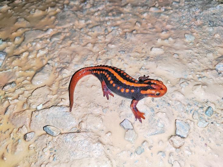 有一次从花甸坝去小花甸的路上,马驰正小心翼翼穿过灌木丛里的小水塘。突然一只豹猫从不远处穿过,浑身金黄色的绒毛,点缀着黑色的斑点,颜色漂亮,动作轻盈。马驰说,那一刻,所有的疲惫都消散了。