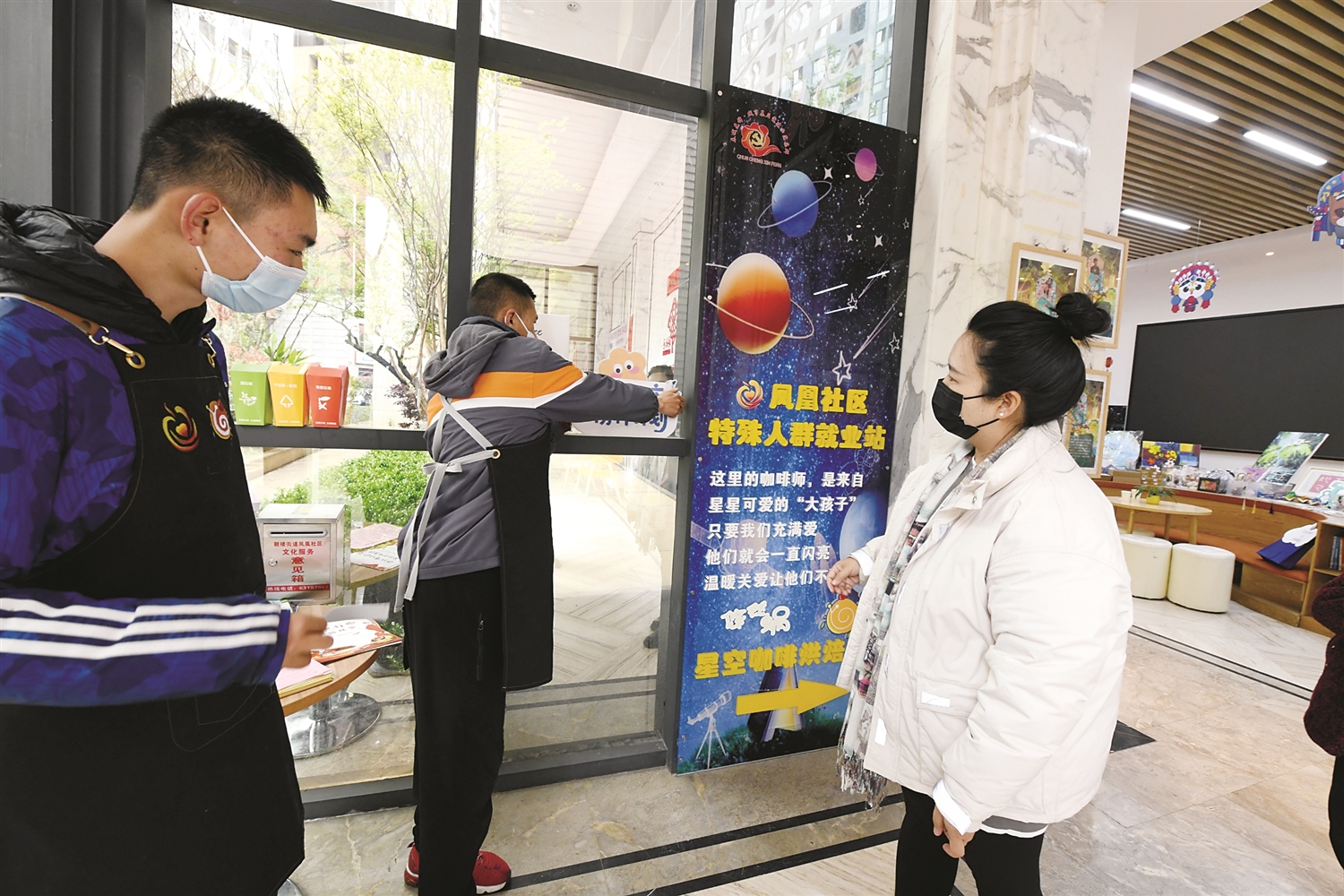 从咖啡屋到文创工作室,从技能培训到市场拓展,目前,凤凰社区已探索建立起一套“培训—创业—支持”一体化服务体系,通过提供场地、平台和资源整合服务,并积极对接各类资源,始终扮演着“幕后支持者”的角色,帮助他们实现自我价值。(昆明日报 记者刘凯达/图 胡耀元/文)