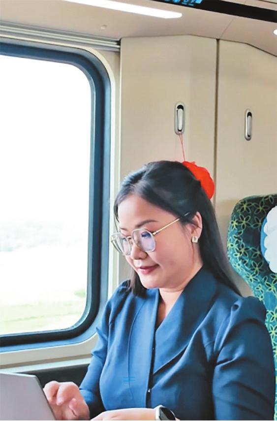 我绝不想浪费一分一秒。于是,当我坐上中老铁路列车,就立刻把车厢小桌板变成了临时工位,笔记本电脑、样品盒、报价单一一摆开,手机连着充电宝,电话里是客户的语音反馈。那连绵的青山和稻田反而让大脑格外清醒,甚至激发出意想不到的商务灵感。