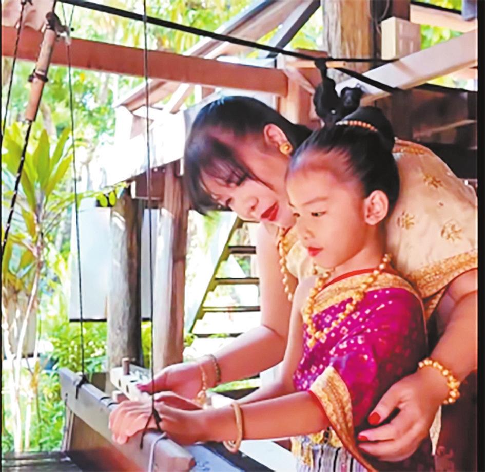 到达目的地后,我带她换上老挝传统服装,去琅勃拉邦非遗传统中心学织布、参加扎线祈福仪式。小姑娘梦想当舞蹈家,我又带她去看传统舞蹈表演。她看得入迷,跟着演员在台下一起跳了起来。