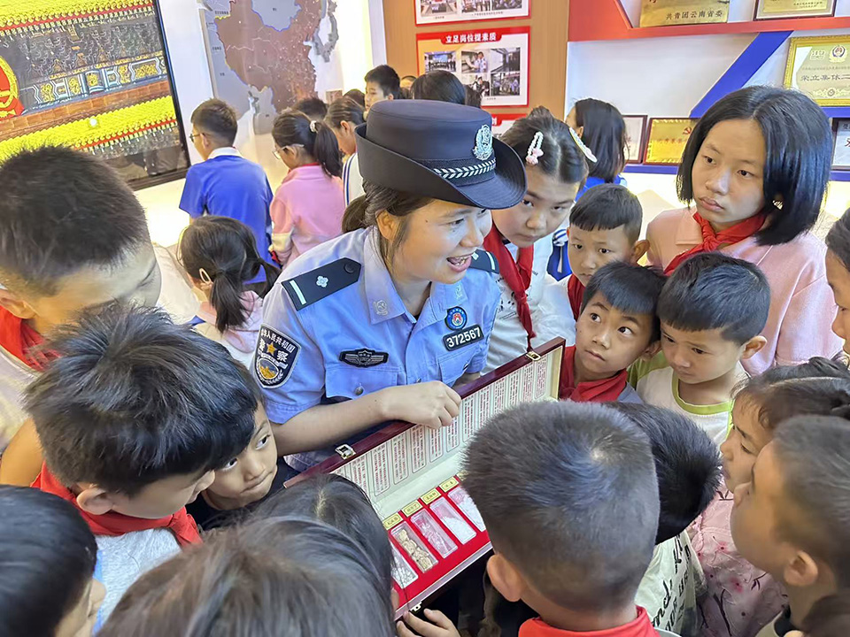 在曼海检查站,孩子们亲眼见证边检站的庄严、聆听民警姐姐讲述戍边故事、了解国门守护的责任与担当。从查验通道到警营文化墙,每一处都在无声诉说着“家国”二字的重量。孩子们眼中满是崇敬,小手高高举起,在提问与互动中,爱国戍边的种子悄然扎根心底,将抽象的爱国戍边情怀,化作了可感可知的实景体验。