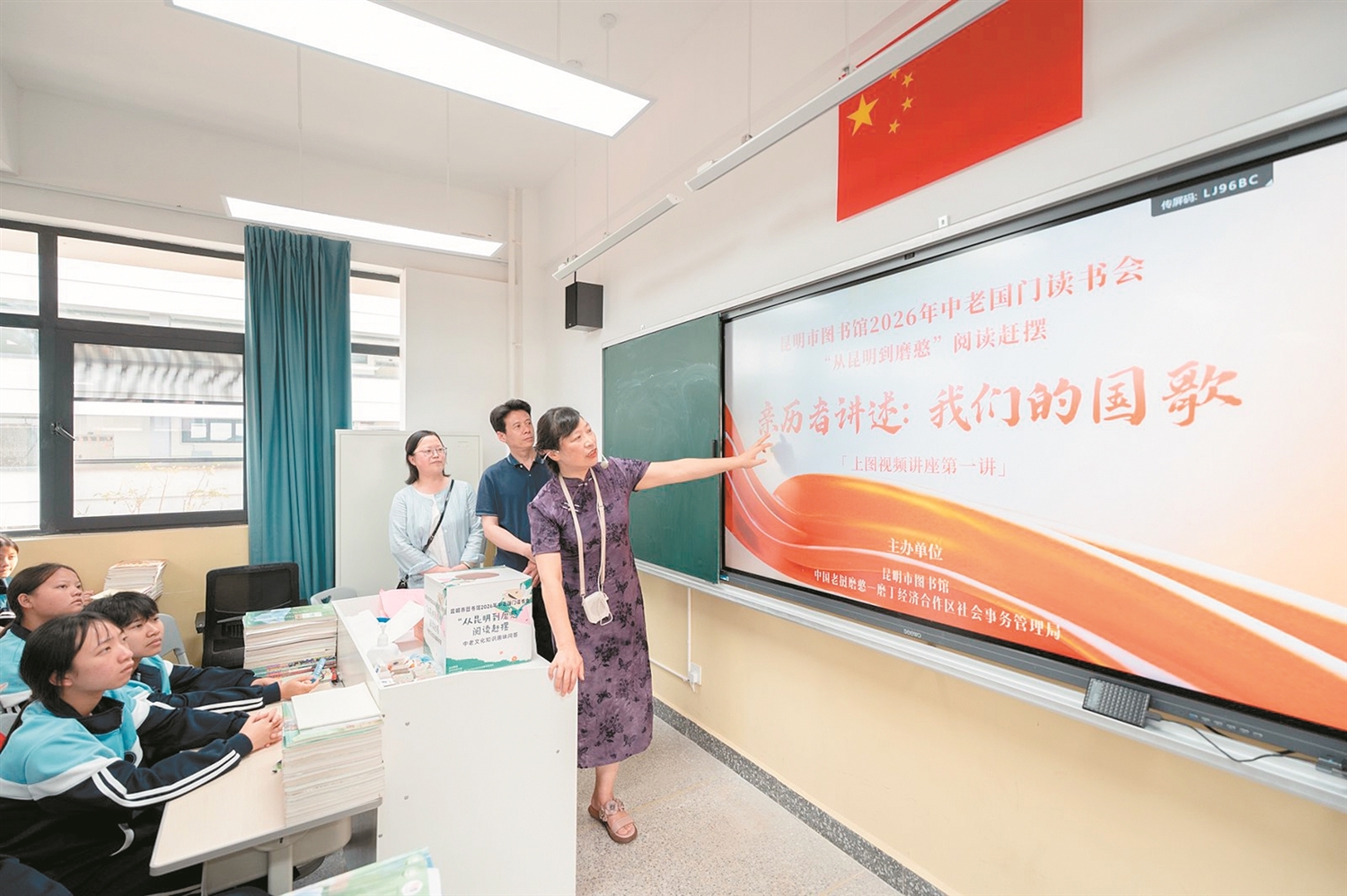 “亲历者讲述:我们的国歌”主题讲座走进边境校园。昆明市图书馆供图