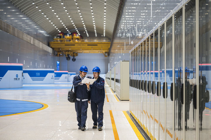 2025年12月19日,工作人员在白鹤滩水电站开展日常巡检工作。新华社记者 王冠森 摄