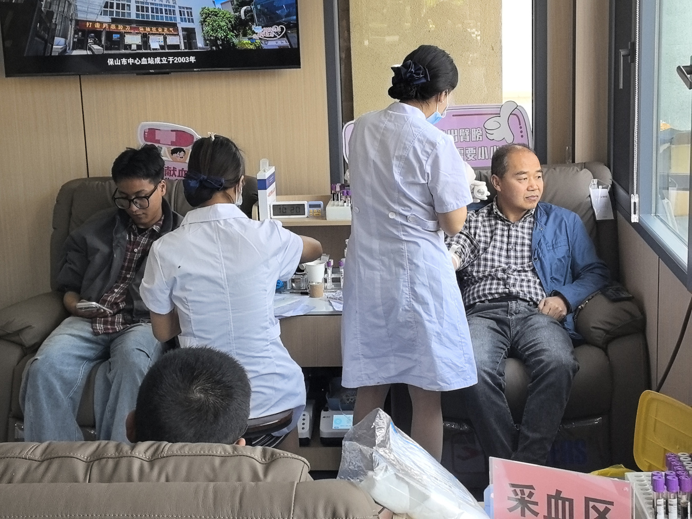“我的血型是B型,这个血型在临床中应用较多。今天来后就报名献全血400毫升,此前,我已6次献血,今天献完后,累计献血量已有2400毫升,今后只要身体条件允许我基本都要保证每年献两次。”今年49岁,正在参加献血的张强说,通过参加无偿献血能帮助到别人他感到很开心。