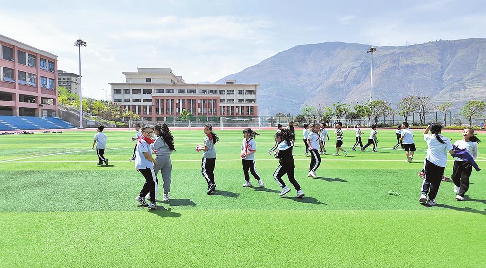 学生在操场玩沙包。云南日报记者王琼梅/摄