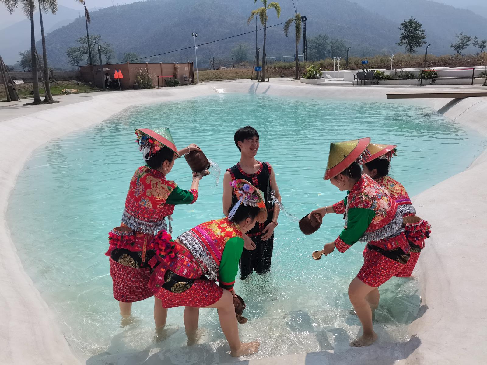 多家文旅单位也加入了狂欢阵营:戛洒铂森假日温泉酒店推出花腰傣电音泼水;花腰田间民俗文化村可以体验篝火晚会、稻田捉泥鳅、傣装旅拍;哀牢山秘境欢乐谷度假乐园则准备了民俗演艺和夜间狂欢,大人小孩都能玩到尽兴。