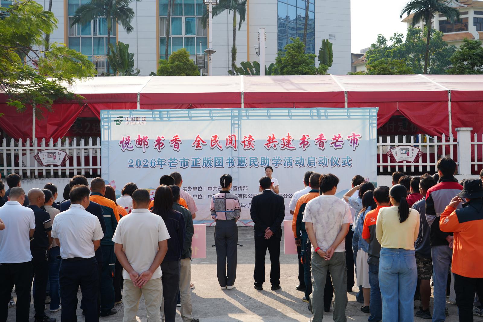 4月17日,2026年“悦邮书香 全民阅读 共建书香芒市”正版图书惠民助学活动正式启动。市委宣传部、德宏州邮政芒市分公司及相关单位负责人、爱心企业代表和市民群众共同参加启动仪式。