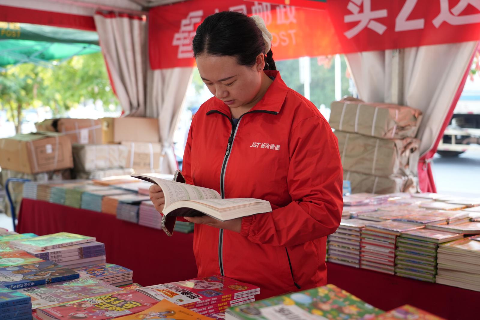 芒市邮政快递员杨震:我孩子每天都有半小时课外阅读的需求,平时买书基本都是线上购买,还会担心价格和版权的问题,这次线下活动力度那么大,买三本送八本,我准备带着孩子一起来挑选课外读物。
