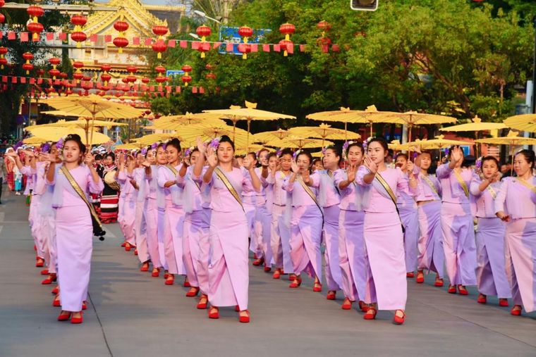 孟连的魅力远不止于节庆。这里是“龙血树的故乡”,拥有全国保存最完整、储量最大的龙血树群落。走进娜允古城,宣抚司署巍然矗立,诉说着土司时代六百余年的荣光;大金塔与南垒河相映生辉,千盏灯会的烛火映照着傣家人的感恩与虔敬。孟连更是一片多民族共生的沃土,傣族、拉祜族、佤族、哈尼族世代和睦,“宾弄赛嗨”的民族团结情谊浸润在每一条街巷、每一场歌舞之中。