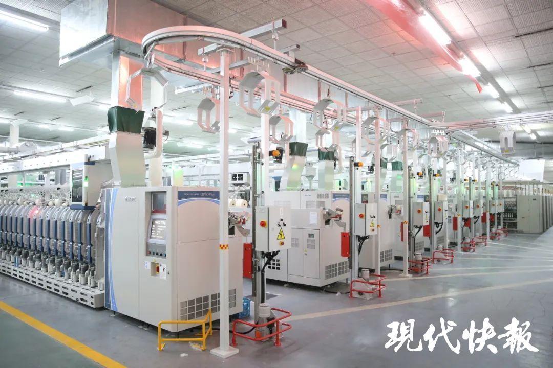 4月25日上午,媒体嘉宾来到位于盐都区的江苏悦达纺织集团有限公司。刚走进10万锭绿色智能工厂,大家就被眼前的景象吸引:5万平方米的车间内整洁有序,一排排智能纺纱设备规律运转,AGV运输机器人沿着32公里智能传输线来回穿梭,银纱飞舞间,空纱管被自动回收,满筒纱线被精准送达。