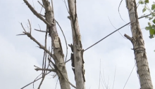 官渡区跑马山路段 暴雨中枯树断裂 贯穿车辆挡风玻璃