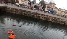 云秀路 女子不慎落水 民警接力救援