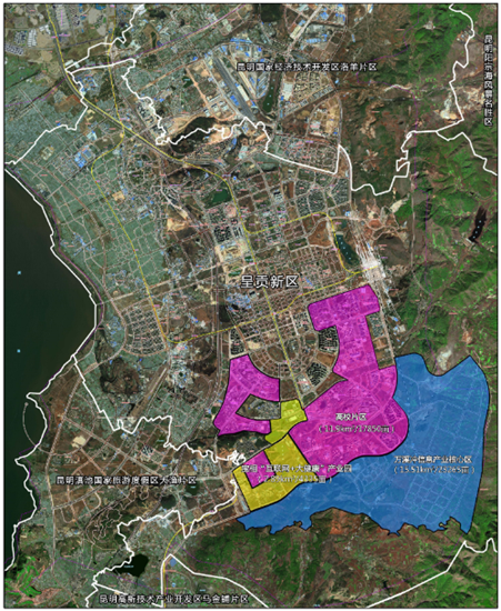 园区规划总面积约30平方公里,呈“一园三区一小镇”格局,即呈贡信息产业园万溪冲信息产业核心区、高校片区、宝相“互联网+大健康”产业园片区、云上小镇双创示范区。