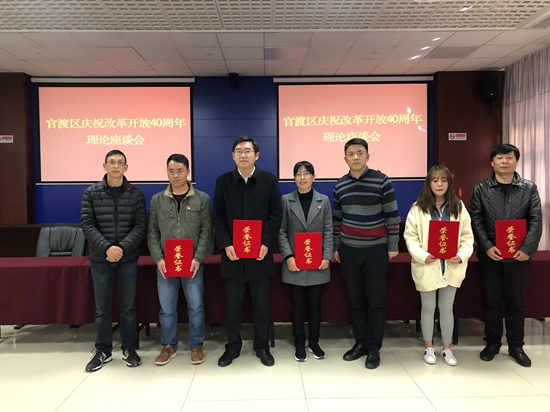 会议宣读了官渡区庆祝改革开放40周年理论征文活动获奖情况,并向获奖作者颁发了获奖证书。据悉,去年9月,由官渡区委宣传部牵头组织的官渡区纪念改革开放40周年主题征文活动,得到了全区广大干部群众的热情支持和积极参与,经过活动组委会组织专家评审,评出一等奖2篇,二等奖5篇,三等奖11篇,并形成《官渡区庆祝改革开放40周年理论研究成果汇编》。