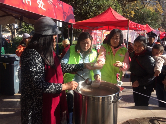 一大早,在官渡区金马街道东华小区的小广场上,和煦的阳光下没有一丝凉风,红红的灯笼、象征节日的春联无处不透露出浓浓的节日氛围。街道工作人员穿上了志愿者服装,免费为来往的市民奉上一碗承载着满满祝福的腊八粥,随着书法大家们挥毫泼墨,一幅幅为市民“深度定制”的春联如“下饺子”般诞生。纯手工制作的工艺品,精心编织的梦网,亦真亦幻的VR体验,令人垂涎的多种美食,无一不让市民过足了瘾,提前感受了足足的年味儿。