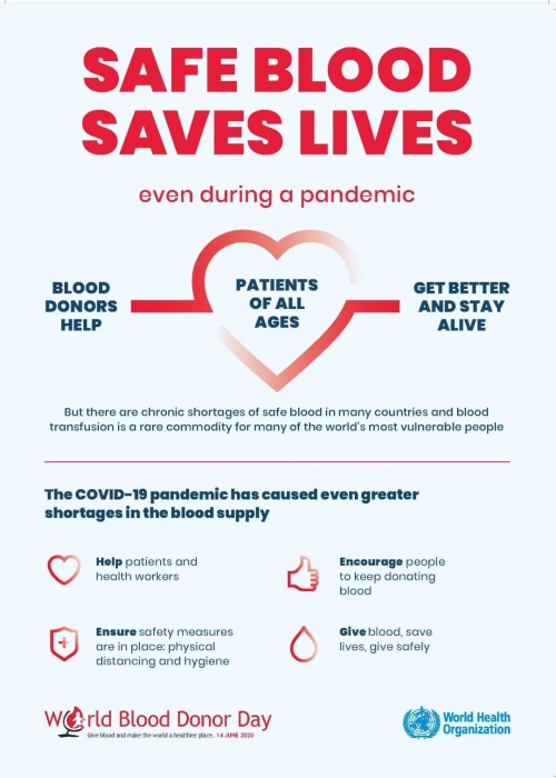 在这一天,我们不仅要感谢献血者,还要提高人们对安全血液的全球需求以及每个人如何作出贡献问题的认识。