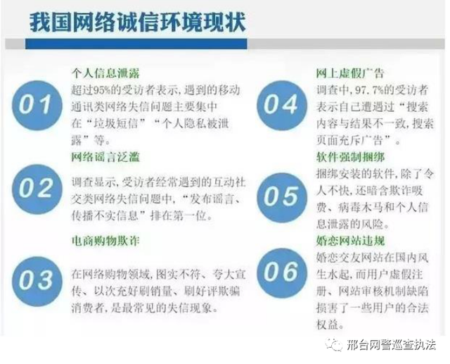 网络为大家带来了很多的便利,但是有些居心叵测的不法分子却利用网络进行不法行为,让大家上网也不安心了!虚假信息及网络失信行为对维护网络公共秩序,保护公众利益带来了挑战,也让人们产生没有必要的心理恐慌。网络诚信的重要性不言而喻。如何构建安全、诚信的网络环境,需要我们一起来出力。