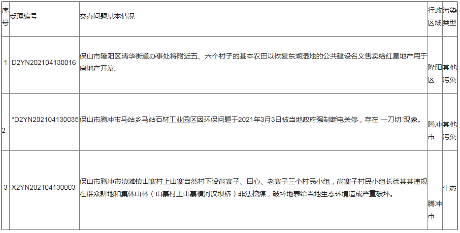 保山市办理中央生态环境保护督察交办投诉问题进展情况通报(五)