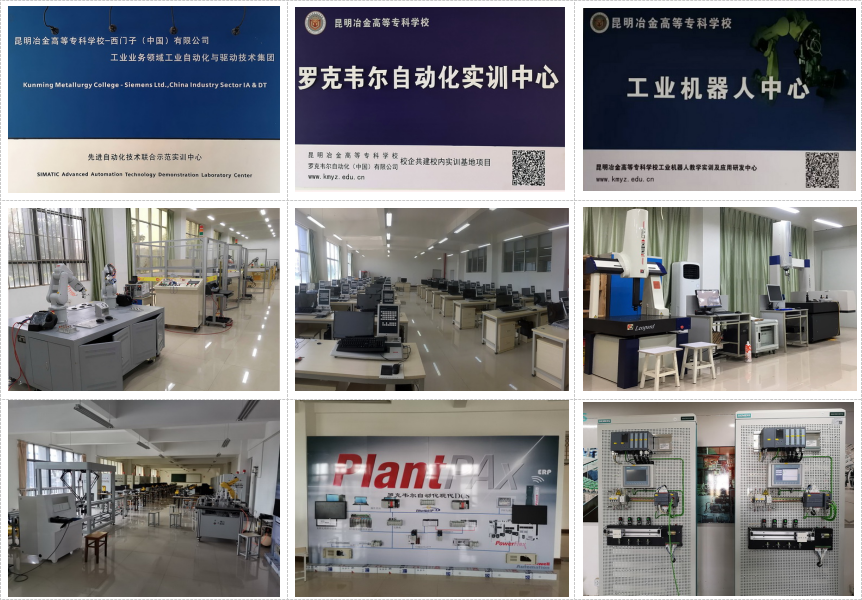 实训条件:学院拥有校内实训中心6个,76间实训室。电气自动化技术实训基地是是国家级生产性实训基地、云南省级校内示范实训基地、云南省高等职业教育校企共建生产性实训基地。实训室面积1万余平方米,拥有7800多万元专业实训设备。建有西门子先进制造技术实训基地、罗克韦尔校企共建实训中心、工业机器人实训中心等48间理实一体化实训室,建立了中车集团、昆明铁路局、云南铝业、昆船智能制造、昆明自动化成套设备有限公司等优质校外实习实训基地40余个。学院与世界一流的自动化领域企业保持良好的合作关系,建立了先进自动化技术示范实训基地,被西门子(中国)公司授予“西门子教育合作项目优秀合作伙伴”、“西门子SCE教师培训中心”。