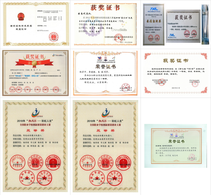 职业证书:电工、可编程序控制系统设计师等职业资格等级证书;工业机器人应用编程、工业机器人操作与运维、冶金机电设备点检等职业技能等级证书。
