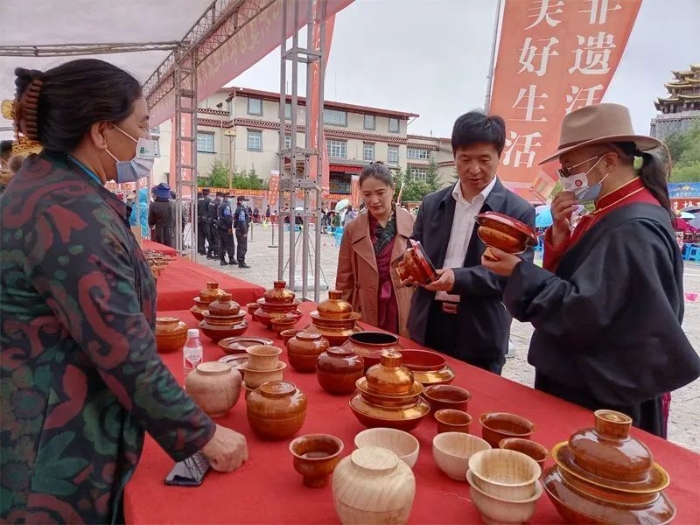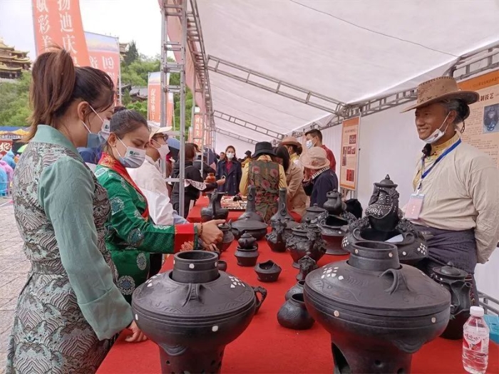6月11日,迪庆州文化和旅游局在月光广场开展“喜迎党的二十大 国家级迪庆民族文化生态保护实验区2022年‘文化和自然遗产日’非物质文化遗产展示展演”系列宣传活动。