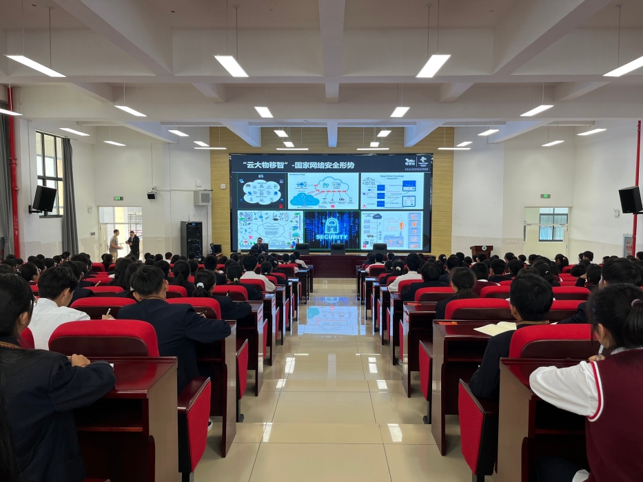 网络安全专家给楚雄州民族中学同学上网络安全课。