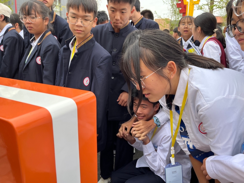 科普大篷车进校园,同学积极参与科学小实验。