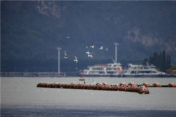 滇池大坝:赴昆越冬红嘴鸥主要栖息地