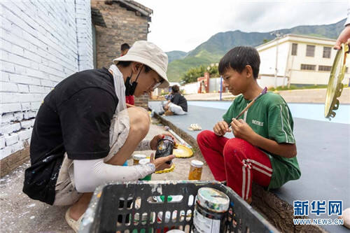 “我会在村里画一些关于传统文化的作品,同时,也会画一些新潮的内容。有人说,这些新东西和村子不搭,我是画给孩子们看的。”