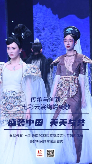 盛装中国,美美与共。11月15日,在云南广播电视台一号演播厅,丝路云裳·七彩云南2022民族赛装文化节盛典之夜暨昆明民族时装周首秀发布。