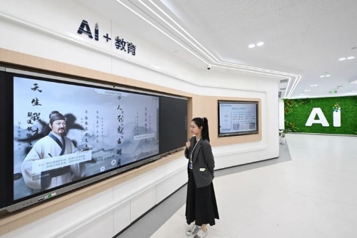 ▲在科大讯飞天津公司,工作人员展示用于教育领域的AI产品(4月18日摄)。新华社记者 孙凡越 摄