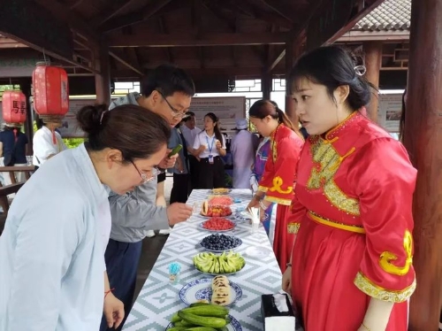 ▲游客在坤站村品尝当地特产。 孙文振摄