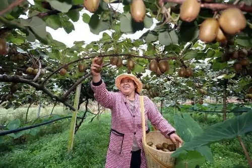 ▲王家庄村,圆润饱满的猕猴桃挂满枝头,沉甸甸的果实压弯枝条,农户皮春丽脸上洋溢着丰收的喜悦。来源:云南日报