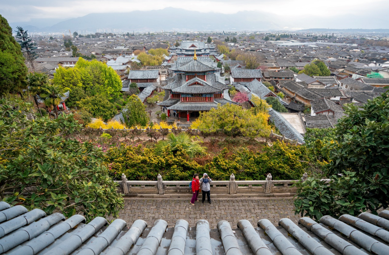 ▲游客在丽江古城木府游玩。新华社记者 陈欣波摄