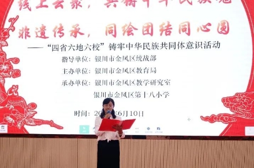 为深入贯彻铸牢中华民族共同体意识,促进各民族优秀文化交流互鉴,2025年6月10日上午9时,一场主题为“云端汇民族遗韵·少年承中华匠心 ”的线上非遗文化交流活动在“云端”盛大举行。来自甘肃省环县红星小学、海南省海口市龙岐小学、云南省昆明市盘龙区云波小学、吴忠市利通区第十一小学、银川市金凤区第十八小学、青铜峡市叶盛中心小学的师生跨越山海,相聚网络,共享民族文化盛宴。