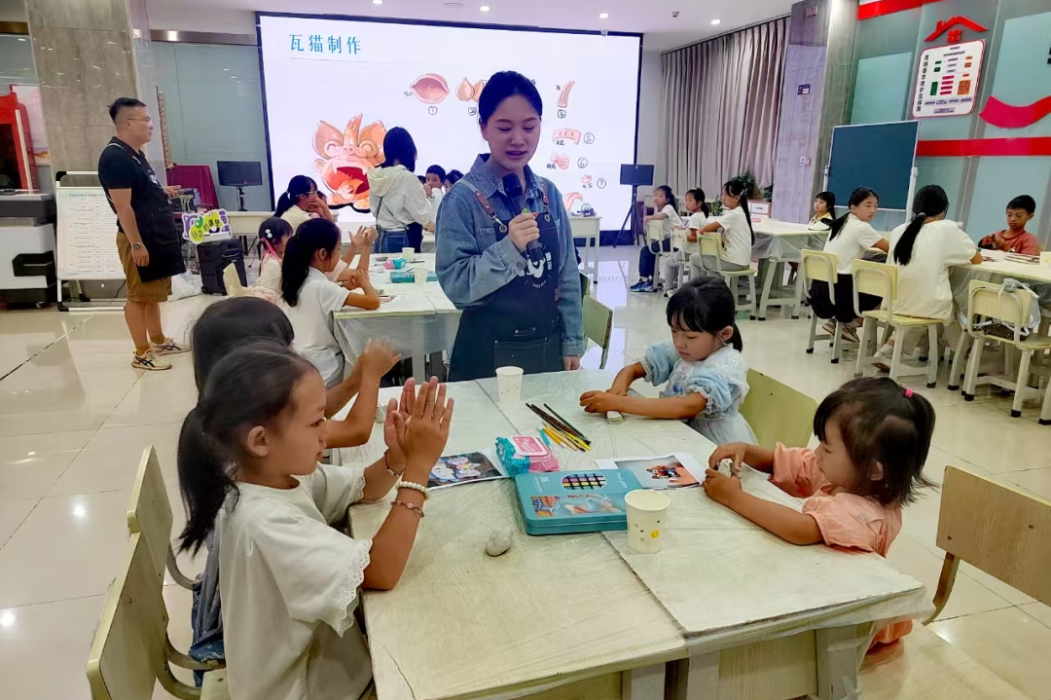 在瓦猫制作中,孩子们揉捏陶土,塑造出形态各异、憨态可掬的瓦猫,感受云南民间信仰与建筑艺术的独特魅力。