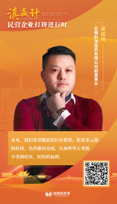 “作为一名从福建安溪来到彩云之南打拼、创业的外省人来说,在云南、昆明的十年,深深感受到这座城市的革新与飞速发展,随着我在全国创业项目的深入,决定于2017年创立云南科海医药有限公司(以下简称为云南科海医药),致力于药品流通,社区医院全方面走向乡村诊所,同时打通药品与功能推介至省级三甲医院的‘最后一公里’”。该公司副董事长吴成伟介绍。云南科海医药成立于2017年,主营业务为医药供应链的整合和服务创新,提升医药产品流通和使用效率,使企业服务的药品立足云南、辐射全国。2020年,公司在昆明山灞大厦自购写字楼落户昆明国家高新区,后在经开区设有占地面积超过15000平方米的仓库,并按照要求严格配备了标准化设备及相关运输车辆。吴成伟表示,“企业年纳税达1000多万,成了当地财政的‘纳税标兵’,为社会效益做出民企应尽的贡献”。
