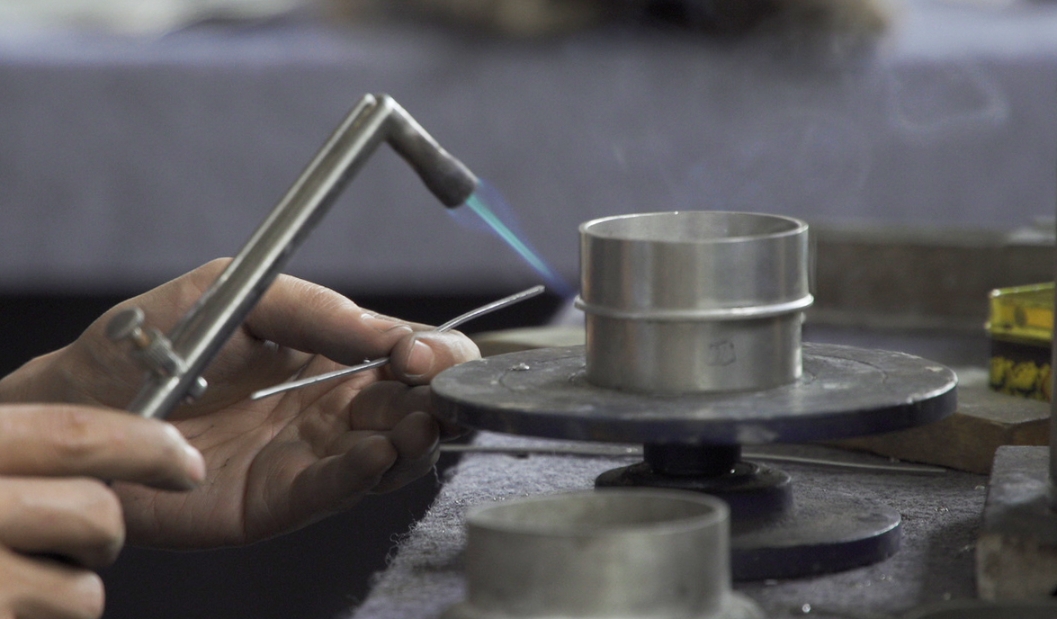 在锡罐的制作过程中,一修从一开始就会不停地去触摸它、把玩它,然后反复不断地在制作过程中追求视觉上的对称、协调与平衡,直到达到让他感觉很协调很舒服时方肯作罢,可以说每一件作品都是独一无二的,因为它们倾注了制作者的心血。