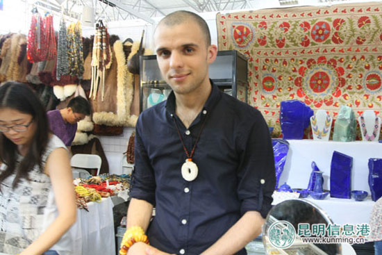 阿富汗展区里,一个手工艺展棚被围了水泄不通。浓眉大眼、笑容儒雅的阿富汗帅哥正在给展客们介绍商品的材质和特点,忙的不可开交。据该展位的负责人Tony Abranhim介绍,这是他们第二次来中国,他既是一名展商也一名设计师,这次南博之行让他觉得深刻而美好。他说:“我们的产品在许多知名杂志上出现过。对于昆明,或许未来会考虑在昆明开店,但不是现在,我们先要找到合适的地段和商铺再考虑下一步行动。”记者廖拓溪/摄
