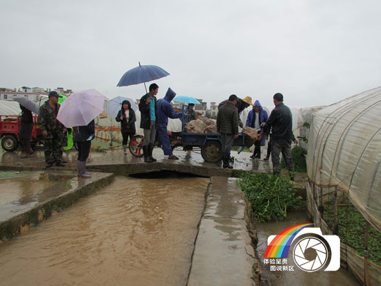图片说明::2014年8月12日,乌龙街道领导组织机关干部及社区干部开展泄洪抢险工作。