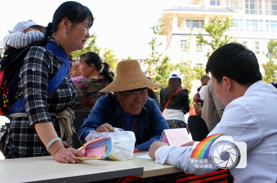 图片说明:爱岗敬业奉献是白衣天使在百姓心中特有的形象。此图表达的是一位共产党员医务工作者,不为名利,以党员志愿者身份下到吴家营为民进行义诊服务活动。