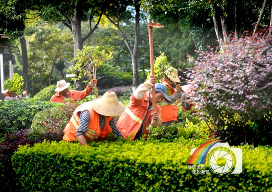 图片说明:摄于呈贡新区。新昆明的建设就是这些普通的绿化劳动者为先驱,踏实劳作而起步。