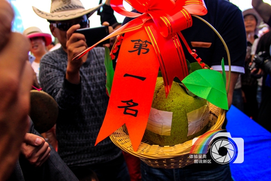 图片说明:一号梨王!图片是2014年九月27号参加昆明信息港彩龙社区活动,在呈贡万溪冲宝珠梨采摘节闭幕式上拍照的,记录了梨王的评选和拍卖的全过程。五个梨王共拍得了48500元人民币,呈贡区宣传部,即将把这些款项捐献给云南省鲁甸县地震灾区,帮助那里的贫困学生,贡献一片爱心,这体现了我们社会主义国家的优越性和良好的民族传统。