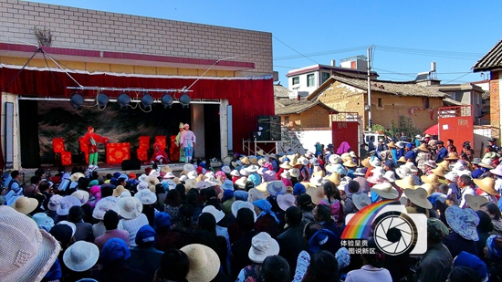 图片说明:每逢春节和节日喜庆呈贡农村都会聚集在乡场上看花灯演出。