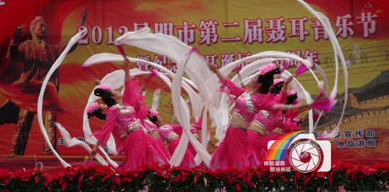 图片说明:2012-8-3日在文化广场表演的舞蹈《梦回大唐》。