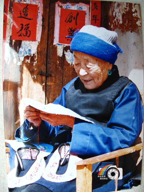 图片说明:呈贡小营的高级民间美术师袁狱兰在绣花。