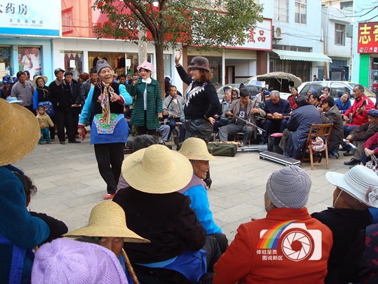 图片说明:每逢赶集,群众便自发地到广场演唱呈贡花灯。