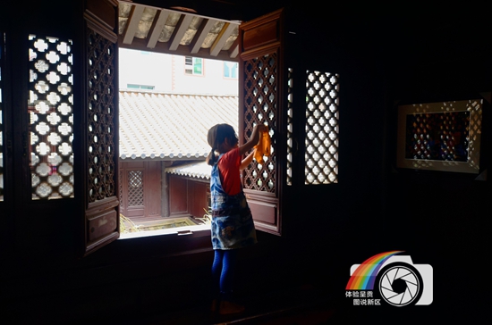 图片说明:张天虚故居,小女孩在帮父母做家务吗?错了!她擦的可是张天虚故居二楼的窗格,没有人要求她,没有人摆拍她,看到窗格积灰了就找来抹布擦干净。摄影师看到了事情的全过程,没有打扰她,只是默默地看她干完活,然后目送她下楼,在楼下看到她妈妈就是接待我们的管理员。