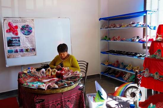 图片说明:2014年9月28日,随彩龙网友参观呈贡民间手工艺制品展览,见到一位正在现场绣制花鞋的妇女,花绣得漂亮,走线却很慢,仔细一问,原来她的右臂有残疾,无法抬高,然而正是这带有残疾的巧手,绣出了精美的花鞋。这种自力更生,尽己所能的精神让我崇敬,赶紧记录下她绣花时专注而恬静的一刻。