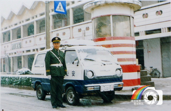 图片说明:大雪天坚持上岗的交警。